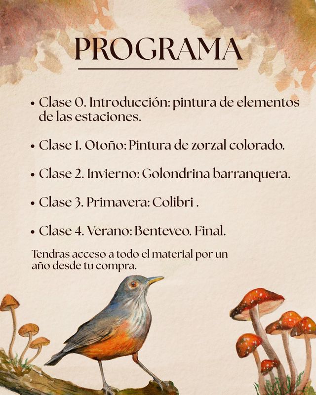 En este Curso ilustraremos un ave por cada estación del año, aprendiendo técnicas básicas de acuarela y lapices de color. Abordaremos tecnicas especificas de la ilustracion de aves y aprenderemos a formar paletas de color distintivas. No requiere experiencia previa.