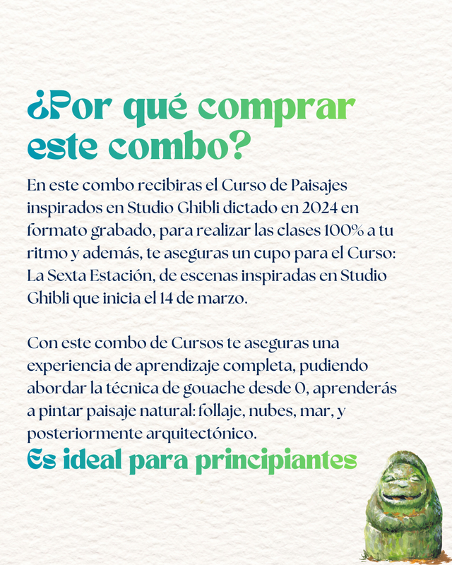 Un Curso donde aprenderas a la par sobre tu estudio de animacion favorita y técnicas de pintura con gouache. Descubri los paisajes de Studio Ghibli a traves de la pintura