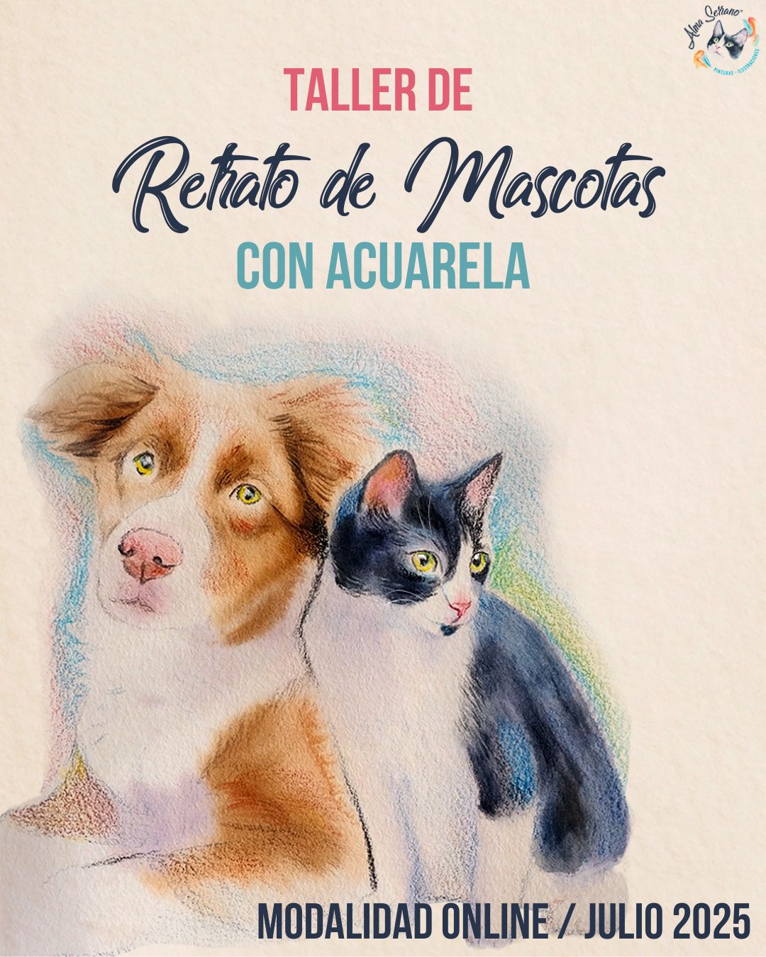 Este es un formato virtual de clases mensuales, que comenzó como un simple Curso corto de Retrato de Mascotas y se volvió un espacio anual. Es un espacio que surge a partir de mi oficio de retratar mascotas, al cual me dediqué por varios años, un oficio que se trata de fabricar recuerdos, convertirlos en un objeto tangible que represente ese amor que una persona siente por su mascota.